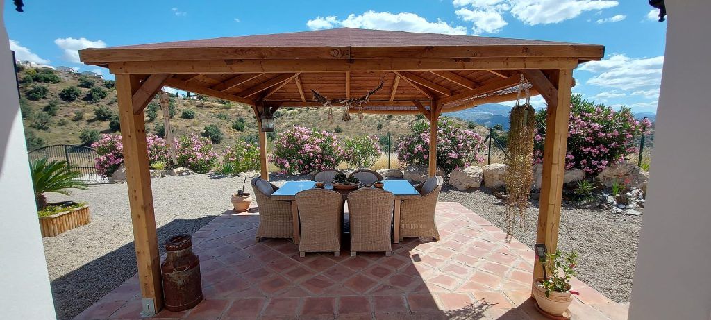Verschillende terrassen rondom het huis om te ontspannen en te entertainen. Rust en stilte, maar toch maar 2 minuten naar de doorgaande weg en alle faciliteiten.