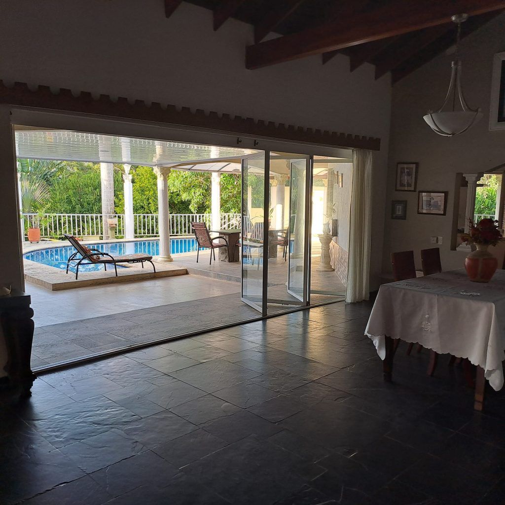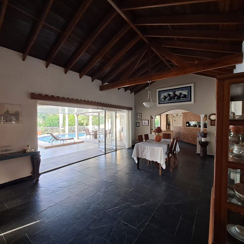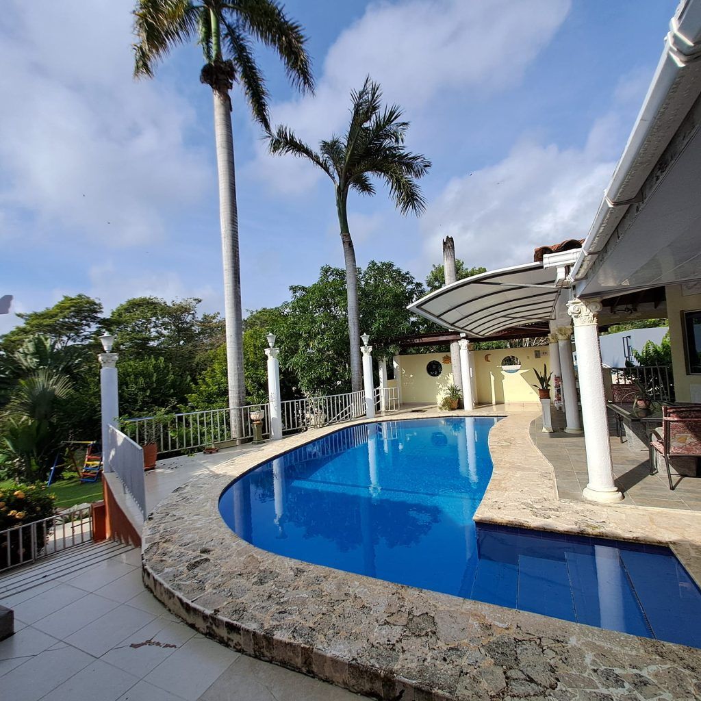 Indeling en Kenmerken: Bij binnenkomst wordt u verwelkomd in een ruime entree die leidt naar een indrukwekkende woonkamer van 70 m². Grote schuifdeuren openen naar een overdekt terras, perfect voor buiten dineren en ontspannen bij het zwembad. De moderne keuken van 45 m² is volledig uitgerust met hoogwaardige apparatuur en vloeit naadloos over in de woonkamer. Aangrenzend aan de keuken vindt u een praktische bijkeuken van 10 m², die directe toegang biedt tot de ruime garage van 50 m². De garage is voorzien van een elektrische roldeur die eenvoudig te bedienen is met een afstandsbediening. Vanuit de woonkamer bereikt u de slaapvertrekken via een aparte gang. Hier bevinden zich drie comfortabele slaapkamers. Twee van de slaapkamers, elk 20 m² groot, delen een moderne badkamer met douche van 12 m². De luxueuze hoofdslaapkamer van 30 m² beschikt over een ruime kleedkamer van 7 m² en een eigen, royale badkamer van 20 m². Vanuit de hoofdslaapkamer heeft u directe toegang tot het terras en het zwembad, waardoor u elke ochtend wakker wordt met een prachtig uitzicht. Buitenruimte De tuin is een ware oase met majestueuze koningspalmen en een overvloed aan fruitbomen, waaronder mango's, bananen en sinaasappels, evenals exotische Colombiaanse vruchtbomen. Deze groene omgeving biedt een idyllische setting om te ontspannen en te genieten van de natuur.