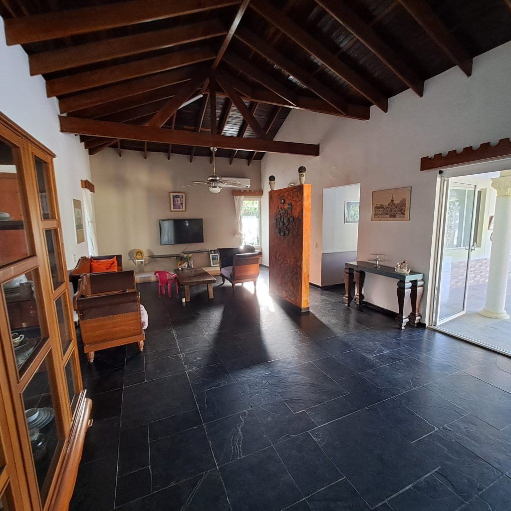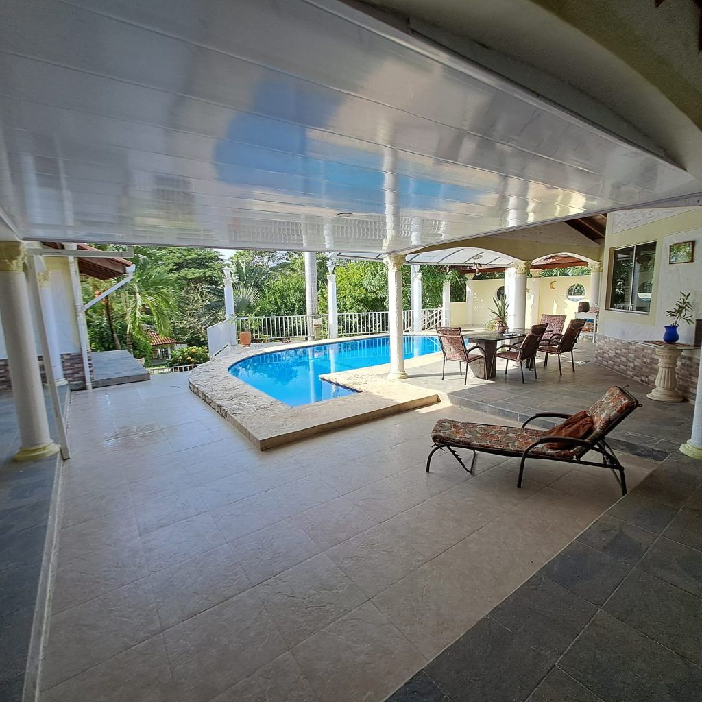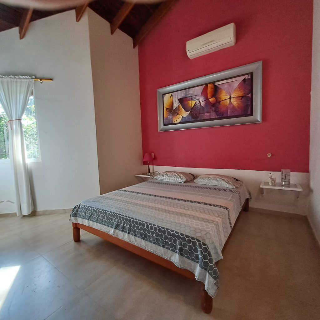 Indeling en Kenmerken: Bij binnenkomst wordt u verwelkomd in een ruime entree die leidt naar een indrukwekkende woonkamer van 70 m². Grote schuifdeuren openen naar een overdekt terras, perfect voor buiten dineren en ontspannen bij het zwembad. De moderne keuken van 45 m² is volledig uitgerust met hoogwaardige apparatuur en vloeit naadloos over in de woonkamer. Aangrenzend aan de keuken vindt u een praktische bijkeuken van 10 m², die directe toegang biedt tot de ruime garage van 50 m². De garage is voorzien van een elektrische roldeur die eenvoudig te bedienen is met een afstandsbediening. Vanuit de woonkamer bereikt u de slaapvertrekken via een aparte gang. Hier bevinden zich drie comfortabele slaapkamers. Twee van de slaapkamers, elk 20 m² groot, delen een moderne badkamer met douche van 12 m². De luxueuze hoofdslaapkamer van 30 m² beschikt over een ruime kleedkamer van 7 m² en een eigen, royale badkamer van 20 m². Vanuit de hoofdslaapkamer heeft u directe toegang tot het terras en het zwembad, waardoor u elke ochtend wakker wordt met een prachtig uitzicht. Buitenruimte De tuin is een ware oase met majestueuze koningspalmen en een overvloed aan fruitbomen, waaronder mango's, bananen en sinaasappels, evenals exotische Colombiaanse vruchtbomen. Deze groene omgeving biedt een idyllische setting om te ontspannen en te genieten van de natuur.