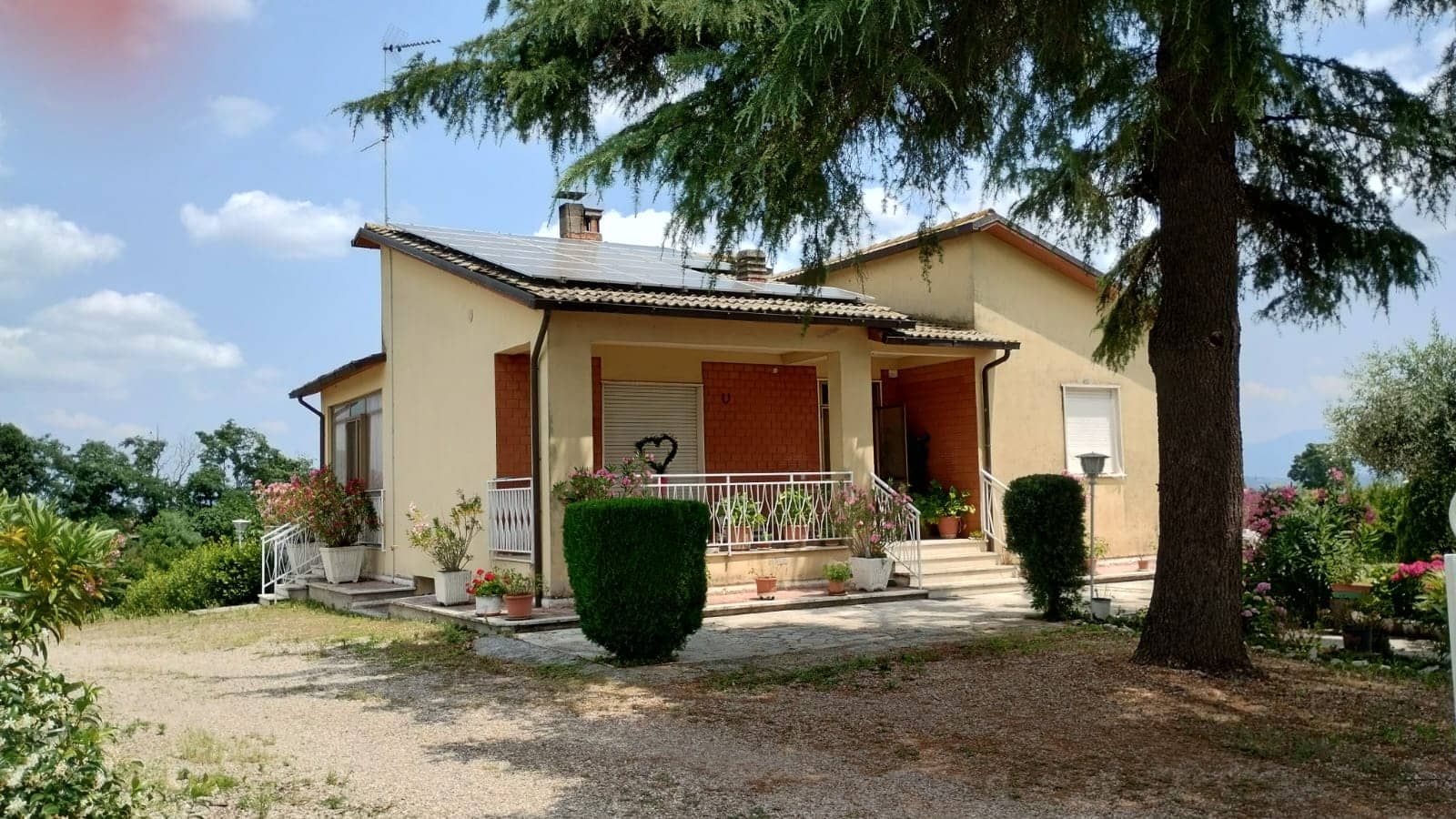 Het huis heeft 4 slaapkamers, 2 keukens, 2 woonkamers, 2 badkamers, 2 ingangen, 2 geboorde putten, 1 kelder, 1 zolder met mogelijkheid voor een extra slaapkamer, garage met 4 parkeerplaatsen, 6KW fotovoltaïsch systeem, installatie van 2 LPG ketels, 1 garage. 1 agrarische gereedschapsschuur met aangrenzende badkamer en balkon, 1 bouwkavel met sterretje op de foto, circa 60 olijfbomen, nog te schilderen villa, 1500m2 tuin en circa 7500m2 grond!
