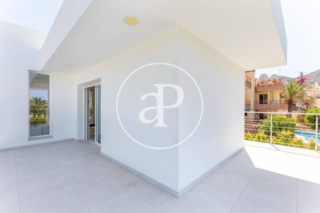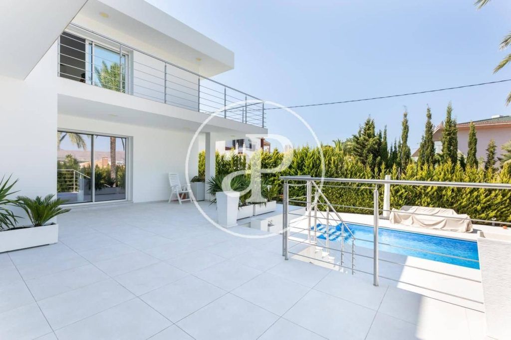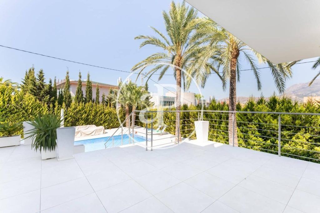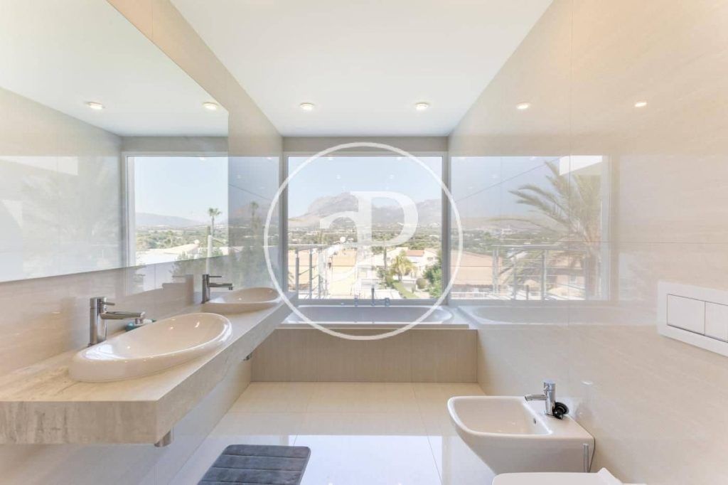 De afstand naar het strand is 1,5 km. De villa heeft een ruime garage voor twee auto’s en voldoende parkeergelegenheid voor een grote auto. Dit twee verdiepingen tellende huis heeft 5 slaapkamers en 4 badkamers, grote terrassen, zwembad, garage, spacentrum en is gebouwd op een perceel van 600 m2. De totale bebouwde oppervlakte van het pand is 550 m2. Op de begane grond is er een zeer ruime woonkamer met toegang tot het terras en een eethoek, evenals een open keuken met toegang tot het terras. Er is een ruime slaapkamer met een complete badkamer. Op de bovenverdieping zijn er 4 ruime slaapkamers, waarvan twee met een eigen kleedkamer, ruime terrassen en een met een complete badkamer met prachtig uitzicht. Benidorm is de toeristische hoofdstad van de Costa Blanca, gelegen op 140 km van Valencia en 50 km van Alicante, beide steden hebben internationale luchthavens. Benidorm is een unieke plek, prachtige natuur beschermt de stad en haar moderne wolkenkrabbers. Het is opvallend met uitzichten die je van alle kanten kunt bewonderen. De villa heeft een uiterst modern en zuinig vloerverwarmingssysteem.