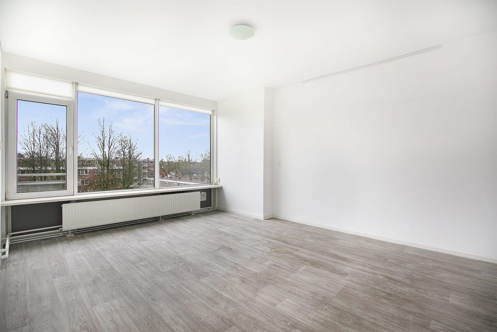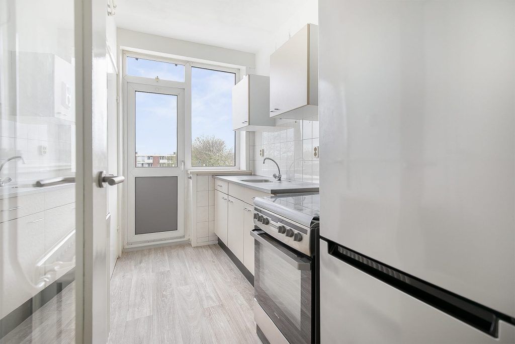 Indeling: Entree: afgesloten entree met bellentableau, brievenbussen en trapopgang. Vierde verdieping: ruime hal met meterkast, toilet met fonteintje, ruime woonkamer met prachtig uitzicht. De badkamer is voorzien van een wastafel met onderkast, spiegelkast, designradiator en een douche. De keuken is uitgevoerd in lichte kleurstelling met een vaste kast voor de wasmachine en droger. Vanuit de keuken is er tevens toegang tot het balkon aan de voorzijde. De slaapkamer ligt tegenover de keuken en is voorzien van een handige schuifpui die ruimte bespaart. Het balkon aan de achterzijde is lekker ruim en krachtig!