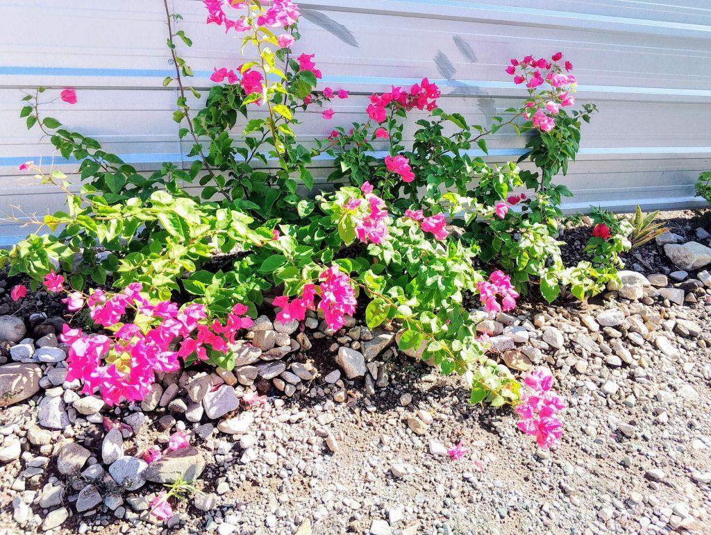 Er staan veel verschillende fruitbomen in de tuin: mango, pruim, sinaasappel, citroen, mandarijn, limoen, kers, notenboom, granaatappel, banaan, druiven, olijfboom, avocado, cranberry, sterfruit, vijg, passievrucht, papaja en nog een aantal andere exotische fruitbomen. Er staan ook wat planten en struiken in de tuin: veel cactussen, veel grote aloë vera planten, suikerriet, duivenerwten, veel yucca/cassave/tapioca planten, een kerstster en altijd bloeiende tropische struiken en bloemen. Er staat ook een grote, mooie johannesbroodboom in de tuin.