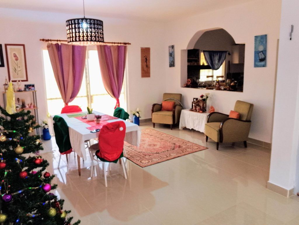 Ons huis is erg ruim en heeft 2 grote slaapkamers, 1 badkamer met douche, wastafel, toilet, een grote keuken met eetkamer, woonkamer, een grote entree en een terras. Het huis is voorzien van hoogwaardige materialen: de gehele woning is betegeld met prachtige Spaanse tegels, er zijn hoogwaardige glazen ramen en horren, en er is een glazen schuifpui naar het tuinterras. Er is ook airconditioning.