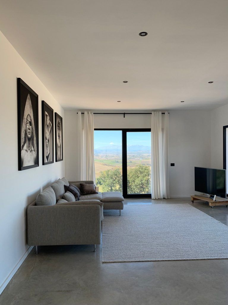• Open living room with large windows opening up to the terrace