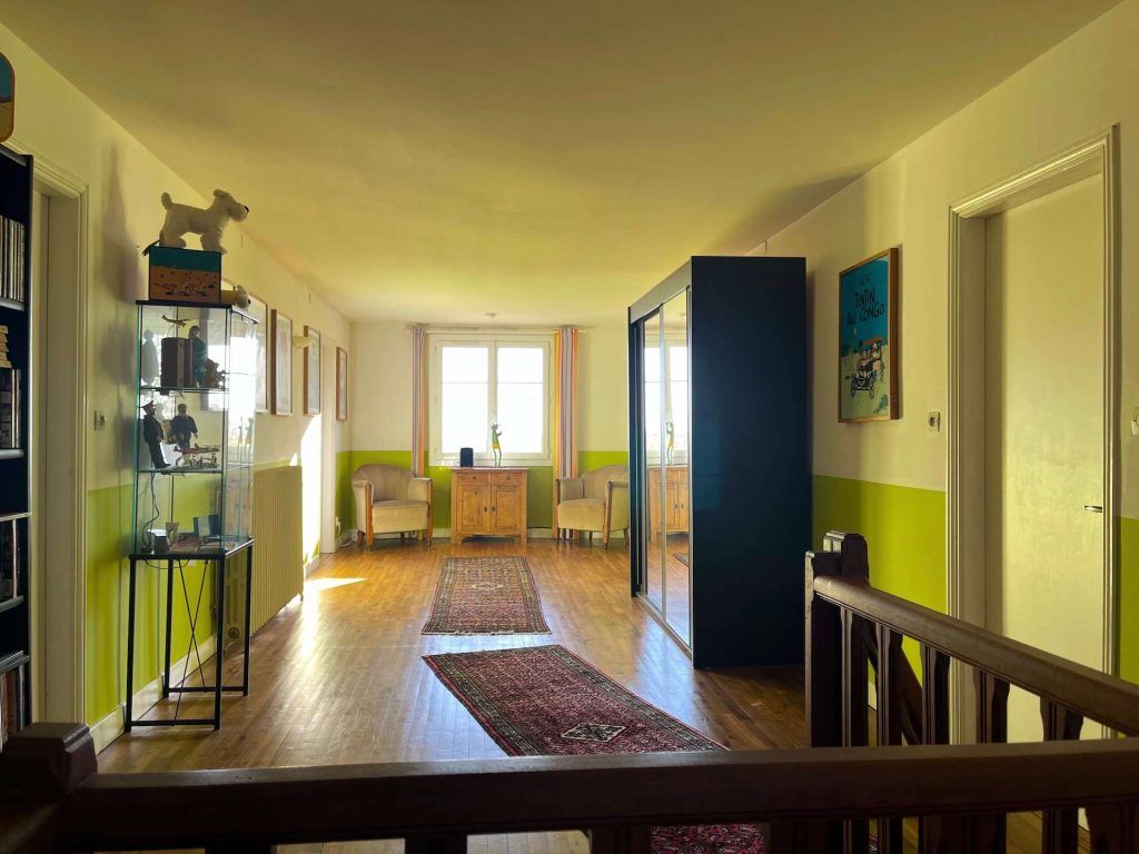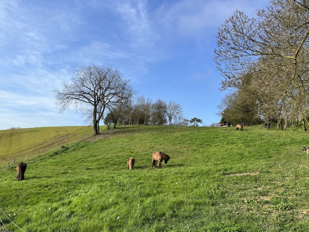 Landoppervlak 1,43 ha met gazon, moestuin, waterput, fruitbomen, bijgebouwen, weide, stal en paardenpaddock. Gelegen in een rustige omgeving, omgeven door prachtige bomen en met een adembenemend uitzicht over de omliggende heuvel waar tarwe of zonnebloemen op worden verbouwd (biologisch).