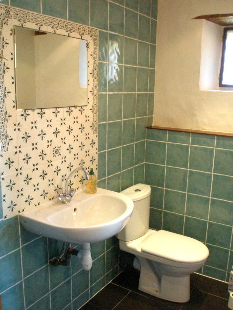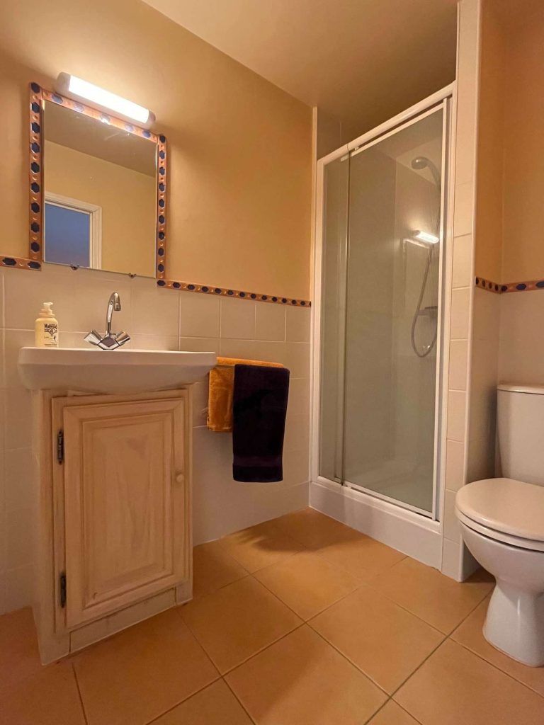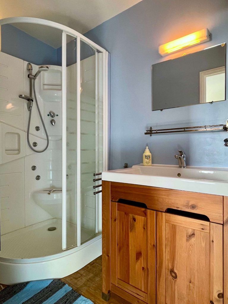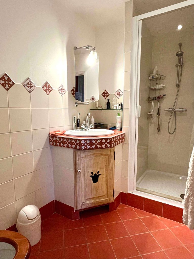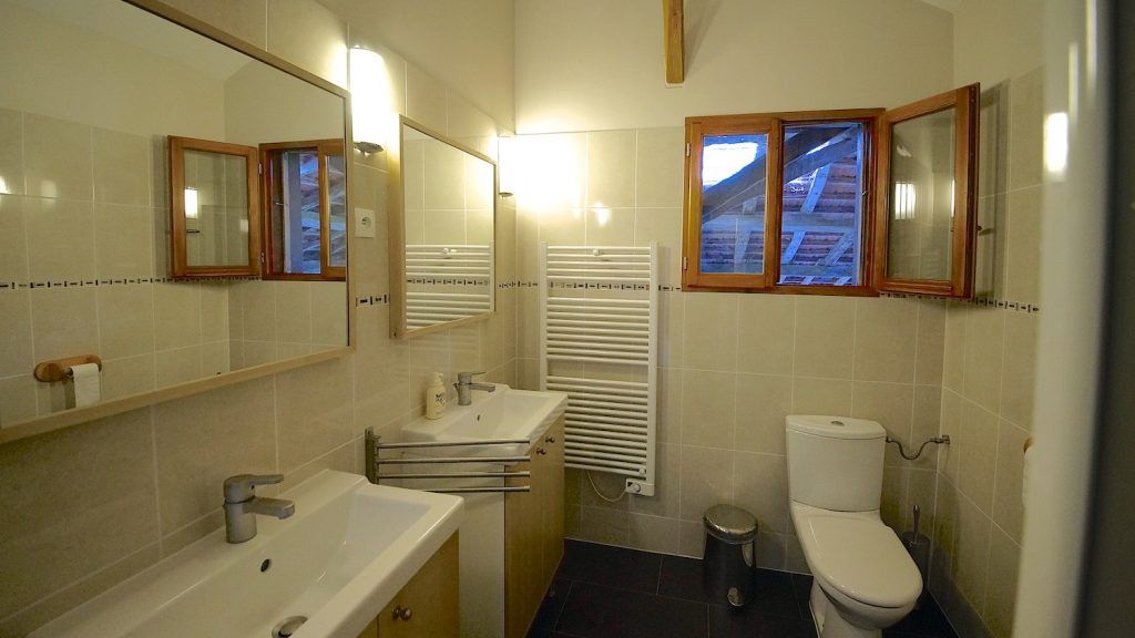Badkamer met douche, toilet en 2 wastafels