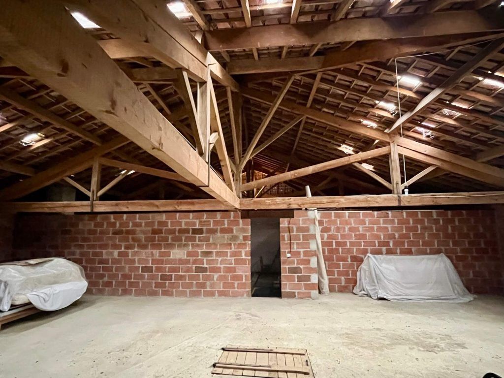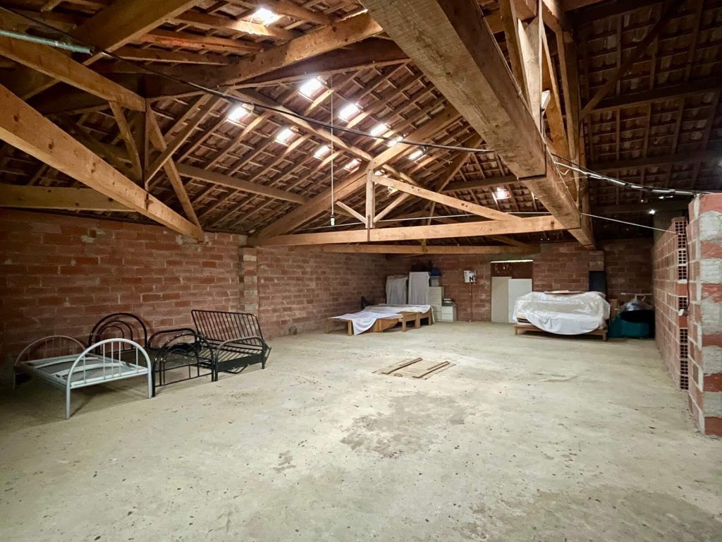 Uitbreidingsmogelijkheid: 150 m² zolderruimte boven de stal, grotendeels met betonvloer.