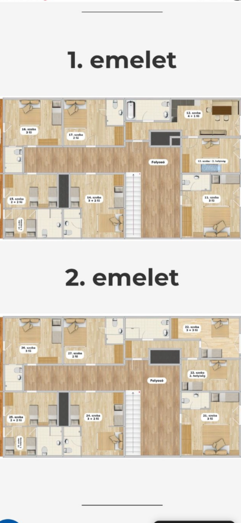 The guesthouse can accommodate 45 people and has its own, functioning and equipped kitchen. The vast majority of the rooms are renovated, the building is in good technical and aesthetic condition, suitable for immediate use. The owners are Hungarian.