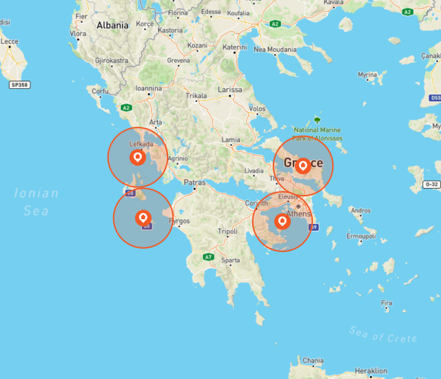 Uitzicht op zee en nabij dorp of stad. Liefst binnen 50km van vliegveld.