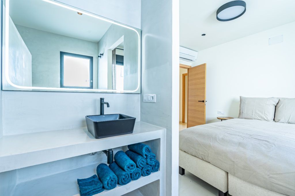 De villa beschikt over vijf ruime slaapkamers, elk voorzien van een eigen ensuite badkamer. Daarnaast zijn er twee volwaardige woonkamers en twee complete, zelfstandig functionerende keukens. Aanvullend is er een zelfstandig gastenverblijf met eigen woonkamer, slaapkamer en badkamer.