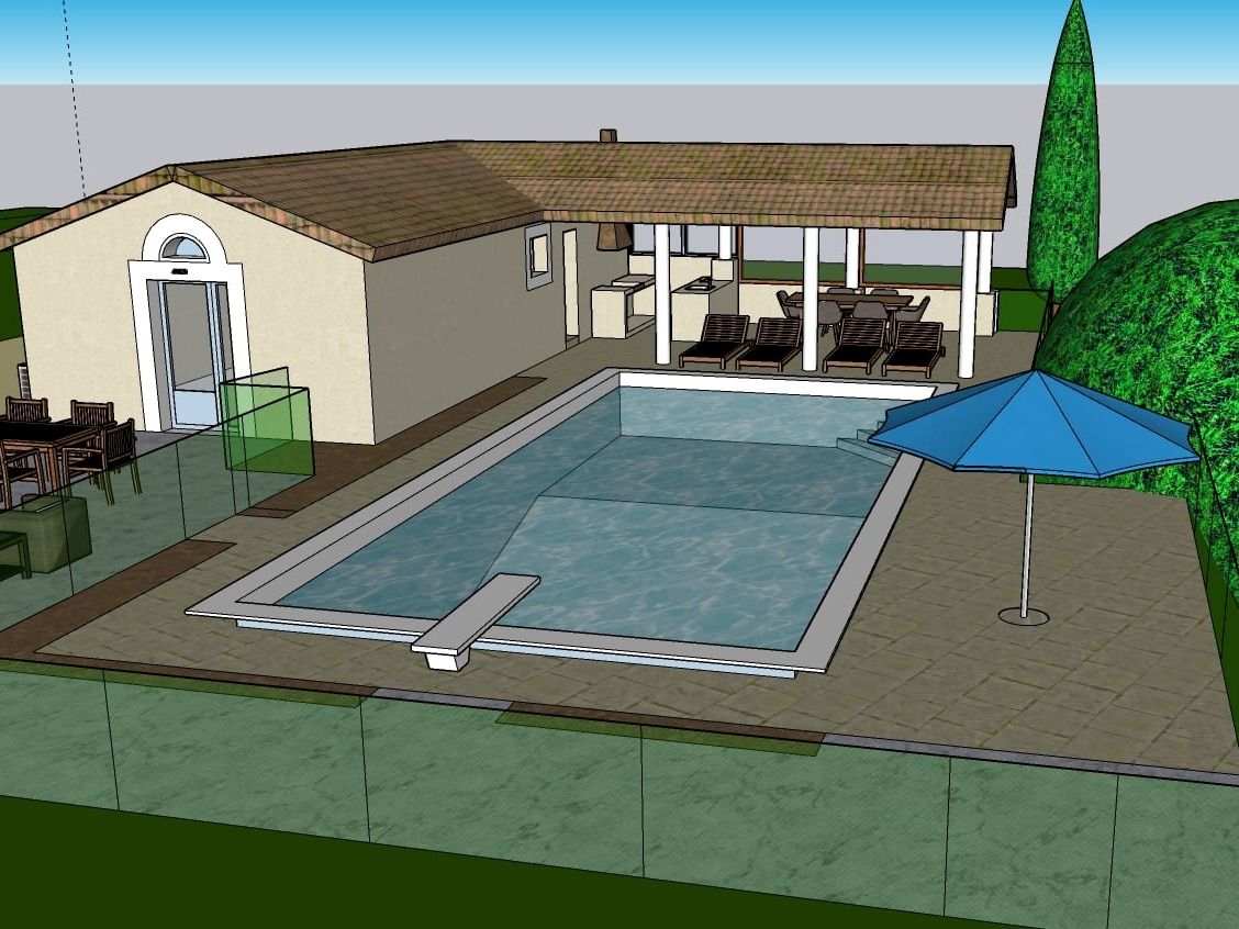 ·        Groot overdekt travertin terras op het zuiden met extra luifel en kleine visvijver;
