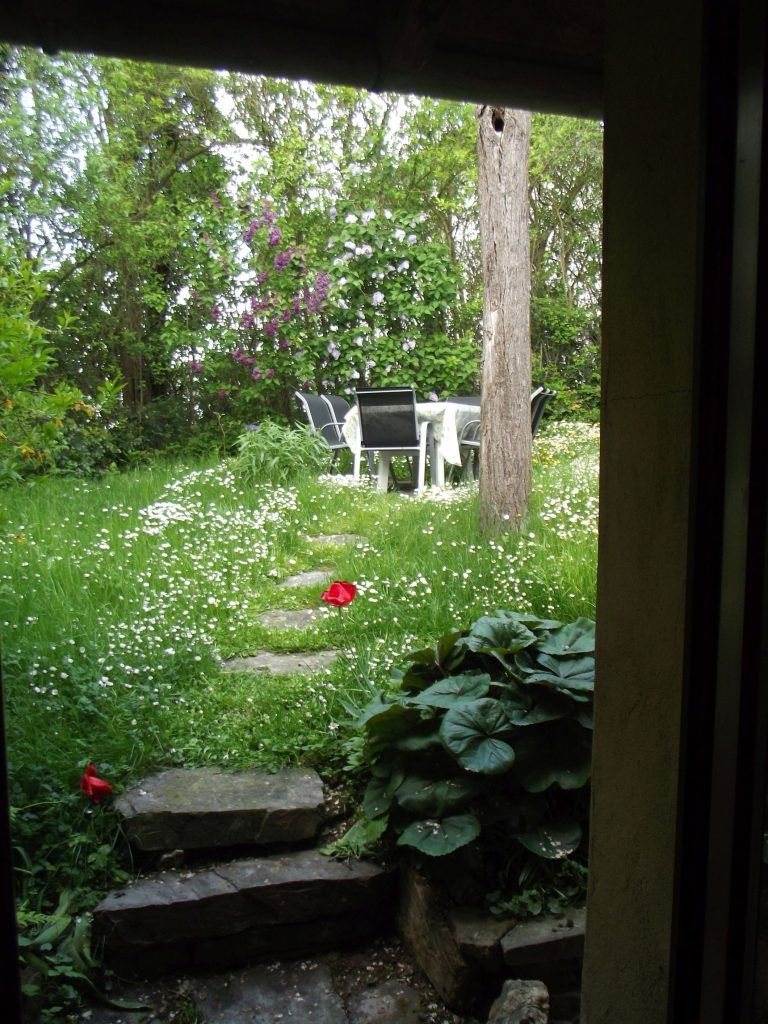 De kleine tuin achter het huis is bereikbaar via de eerste verdieping én via de groene binnenplaats.