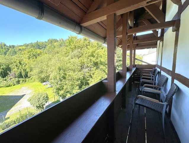 Vanaf het overdekte balkon geniet men van een prachtig uitzicht op het Arnsberger Wald en de Kreuzkapelle. Deze combinatie van historische binnenstad, toeristische aantrekkingskracht en natuurrijke omgeving maakt dit object uitermate geschikt voor horeca- en evenementconcepten.