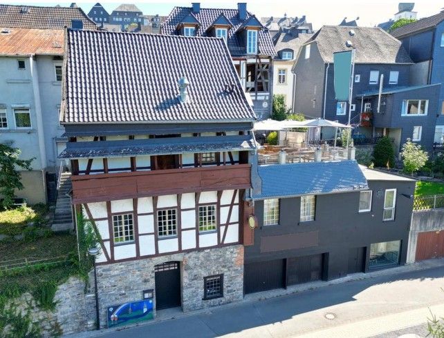 In het hart van de schilderachtige Mühlenviertel van Arnsberg presenteert zich dit monumentale pand uit 1814 als een uitzonderlijk horecapand met een onmiskenbaar karakter