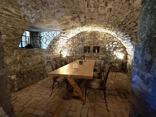 • Historische rotskelder met karakteristiek gewelfd plafond – een bijzonder hoogtepunt voor feesten en besloten gezelschappen