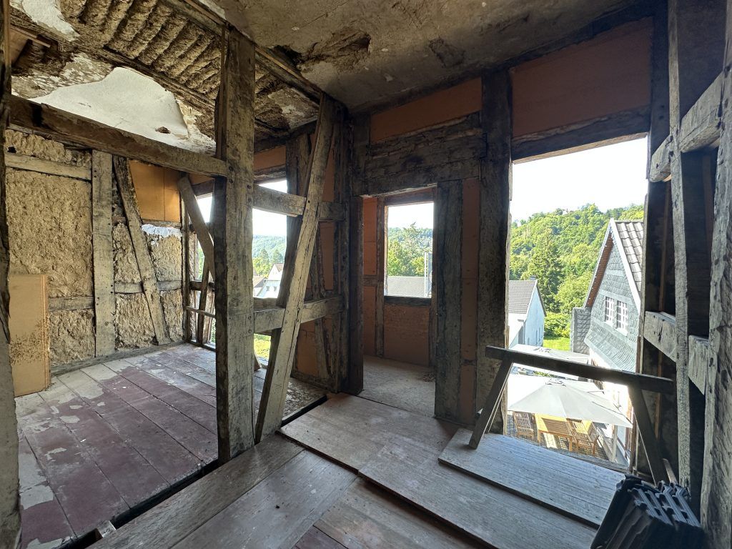In de directe nabijheid van het geliefde Mühlenviertel van Arnsberg wordt dit charmante historische vakwerkhuis uit 1814 te koop aangeboden. Het betreft een tweefamiliehuis met circa 206 m² woonoppervlakte op een perceel van 322 m², volledig gestript en klaar om naar eigen inzicht te worden herontwikkeld.