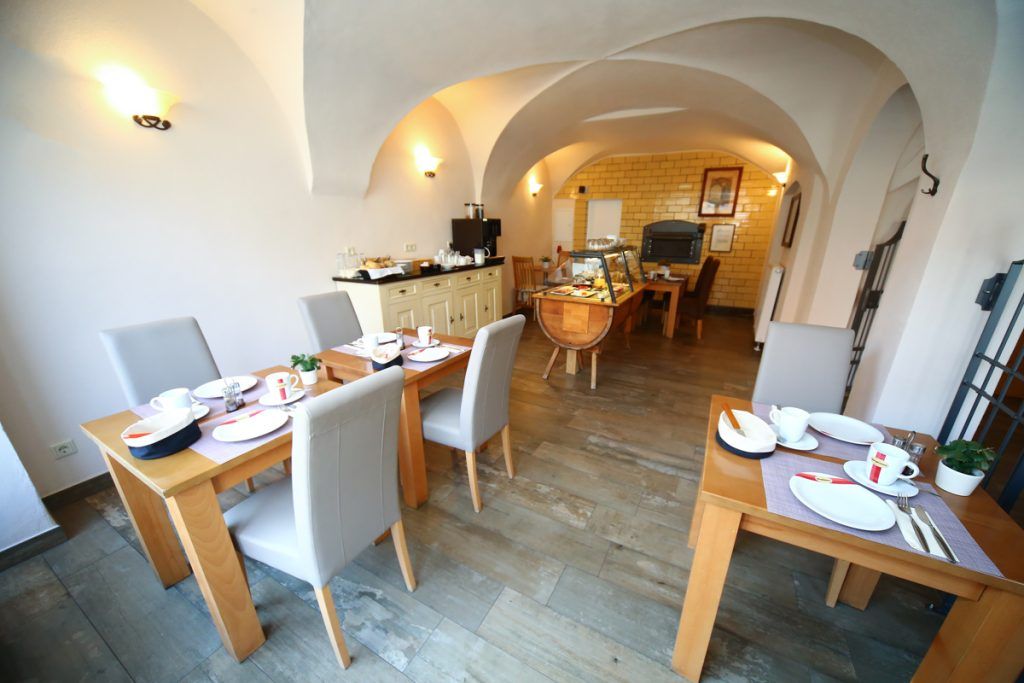 • Ontbijtruimte met keuken en opslagruimte – vroeger in gebruik als konditorei-café; dankzij een aparte ingang ook weer geschikt als winkelruimte
