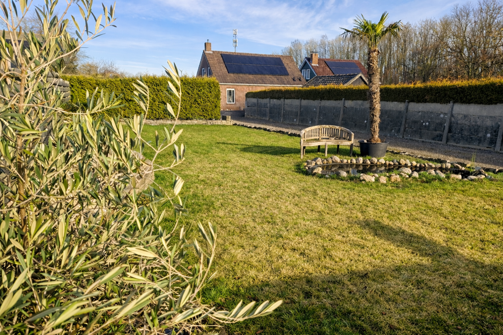 De woning staat op een perceel van 568 m² met een verzorgde tuin. De tuin is in 2025 opnieuw aangelegd en voorzien van een vijver, waardoor een rustige en sfeervolle buitenruimte is ontstaan.