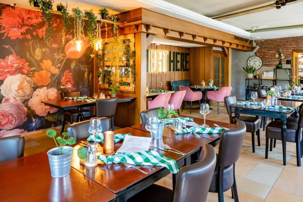 - Een ruime tuingerichte eetzaal (ca. 40 pl.) met separate buffetruimte, voor stevige ontbijtjes en smaakvolle diners