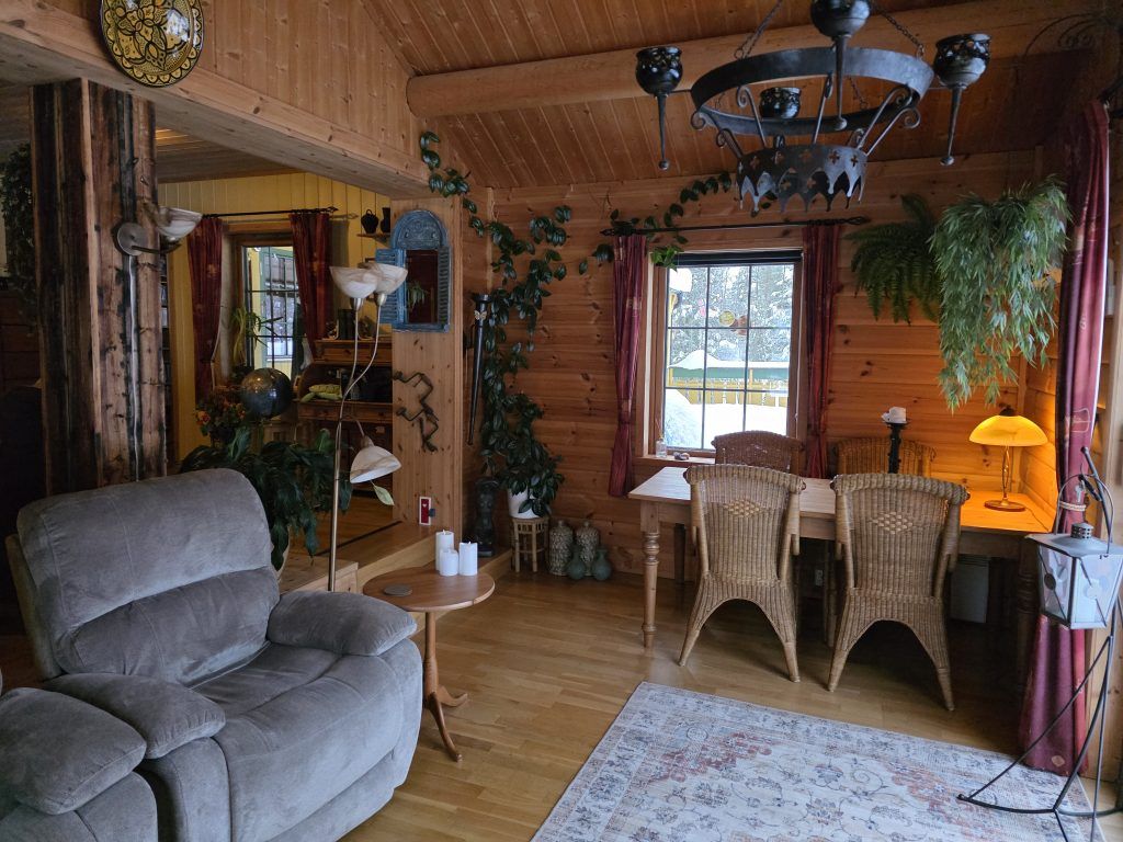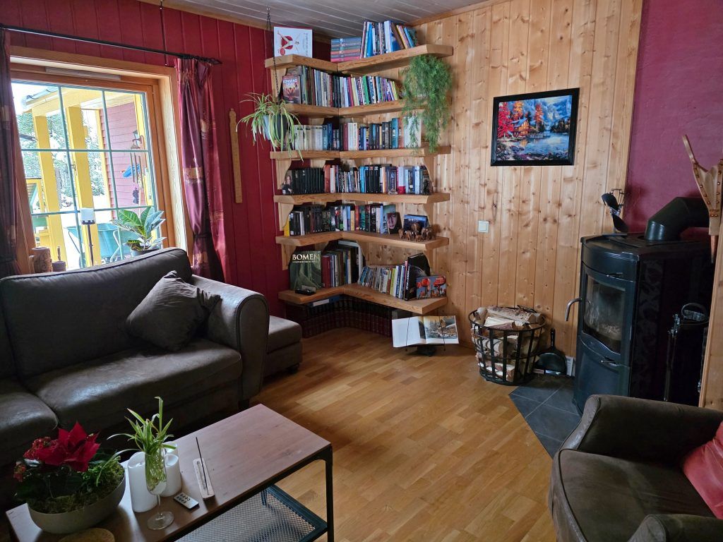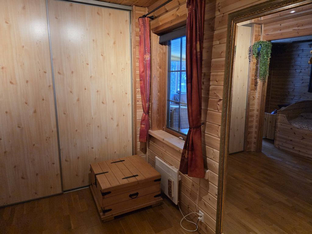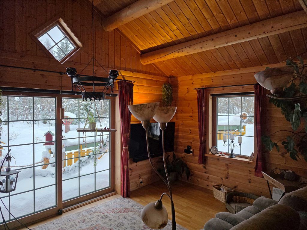 Het huis is enorm goed geïsoleerd: de ramen en schuifpui zijn voorzien van dubbelglas, en de wanden bestaan uit ca.15 cm. isolatiemateriaal. Er is een zeer goede houtkachel, en een warmtepomp (uit 2016). Verder hangen er op diverse plaatsen in het huis elektrische platen; wij gebruiken deze echter zeer zelden, ook niet in de winter bij -25°C of meer. In de kelder staat de warmwaterboiler van 200 liter, drukvat en waterpomp; op het terrein is een eigen waterbron.