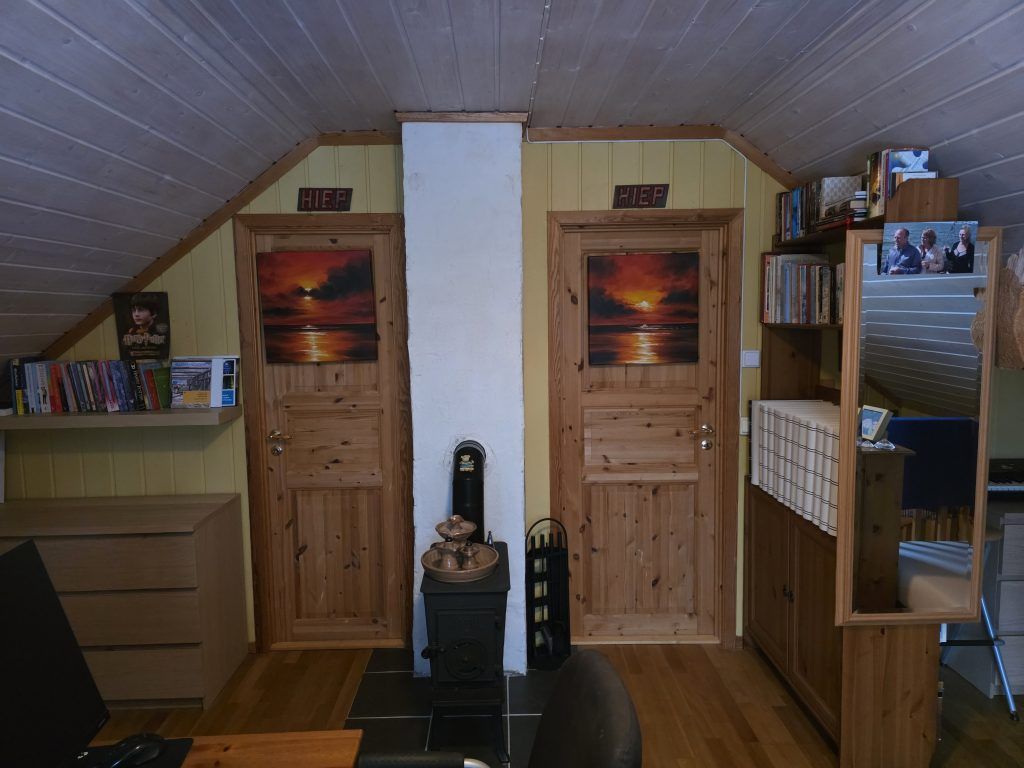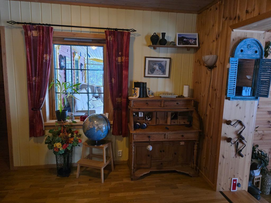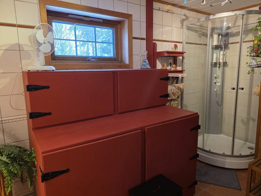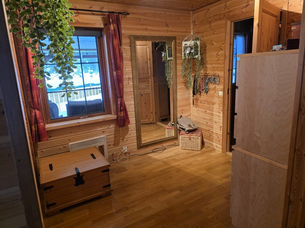 Het huis is enorm goed geïsoleerd: de ramen en schuifpui zijn voorzien van dubbelglas, en de wanden bestaan uit ca.15 cm. isolatiemateriaal. Er is een zeer goede houtkachel, en een warmtepomp (uit 2016). Verder hangen er op diverse plaatsen in het huis elektrische platen; wij gebruiken deze echter zeer zelden, ook niet in de winter bij -25°C of meer. In de kelder staat de warmwaterboiler van 200 liter, drukvat en waterpomp; op het terrein is een eigen waterbron.