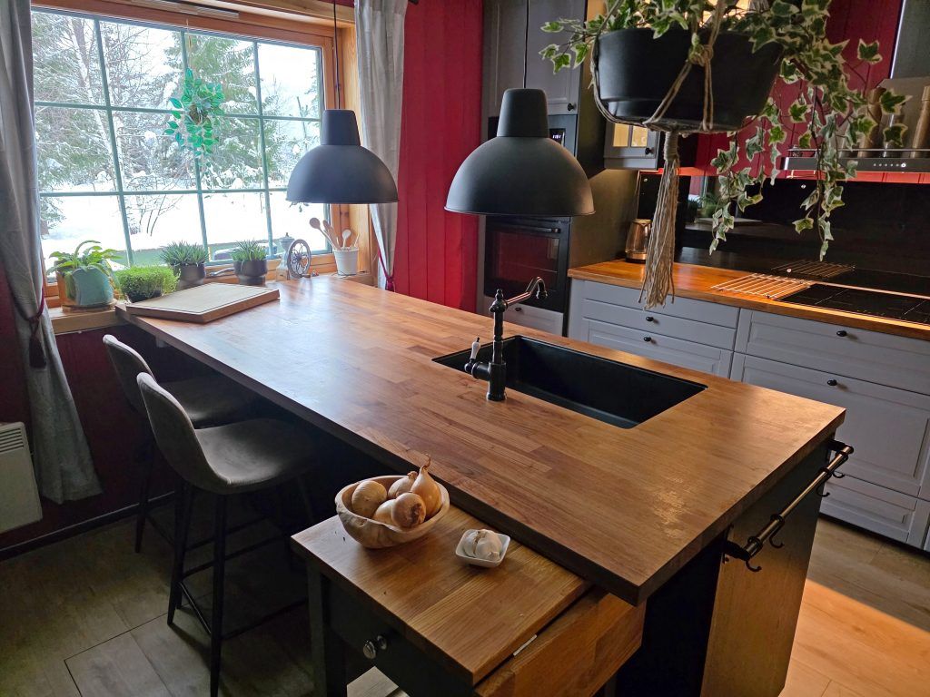 ·        In maart 2014 hebben we de muur tussen de huiskamer en de serre deels verwijderd, waardoor de twee kamers meer met elkaar verbonden werden.
