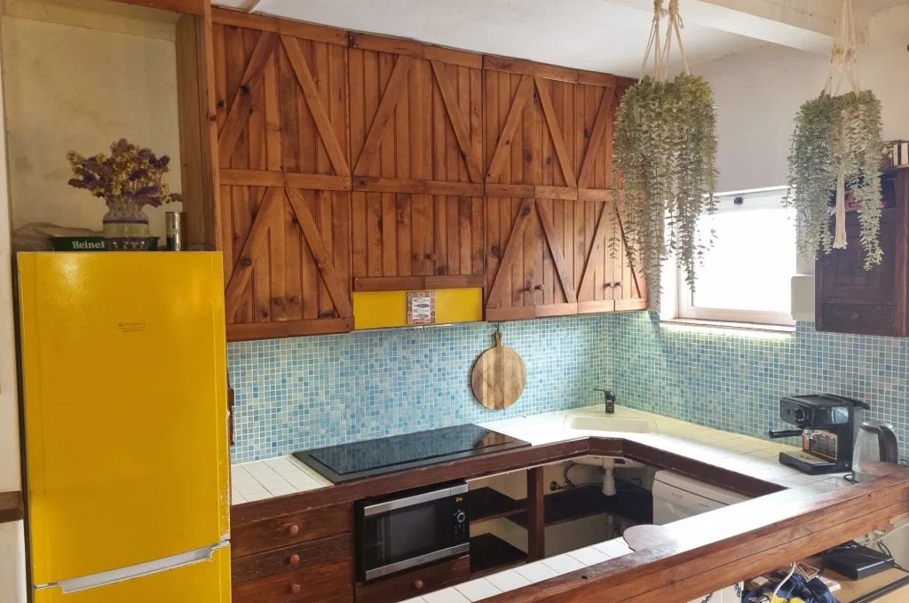 Tuin, zwembad en schuren Het zwembad (±18 m², natuursteen afwerking) ligt centraal in de tuin, omgeven door hangmatten, een picknicktafel en diverse fruitbomen — kiwi, mandarijn, sinaasappel, perzik, druiven en meer. Een stenen buitenbadkamer (±18 m²) met douche, toilet en aansluiting voor wasmachine is beschikbaar voor gasten en eigenaren.